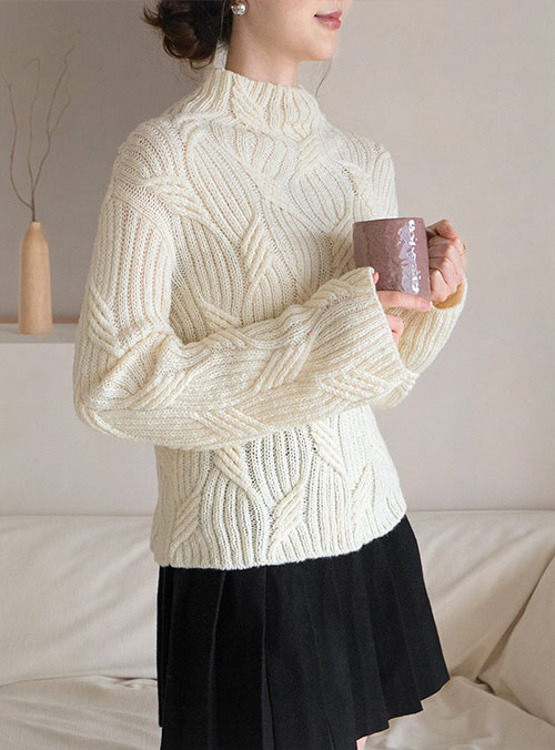 나무 뿌리처럼 흐르는 스위핑립 무늬로 만드는 바텀업 스타일의 풀오버입니다. 스위핑립은 신축성이 매우 좋기때문에 77사이즈까지 넉넉하게 착용이 가능합니다. 뜨개질 숙련자 분들께서 뜨실 수 있는 난이도이며 바텀업 전체 기호도안이 제공됩니다. 참고 동영상은 제공되지 않습니다. 겉뜨기, 안뜨기, 꽈배기 무늬 뜨기, 코줄임, 코늘림을 어려움 없이 소화하시고 기호도안 읽는 방법을 이해하시고 계신분들께서 도전해주시기 바랍니다.