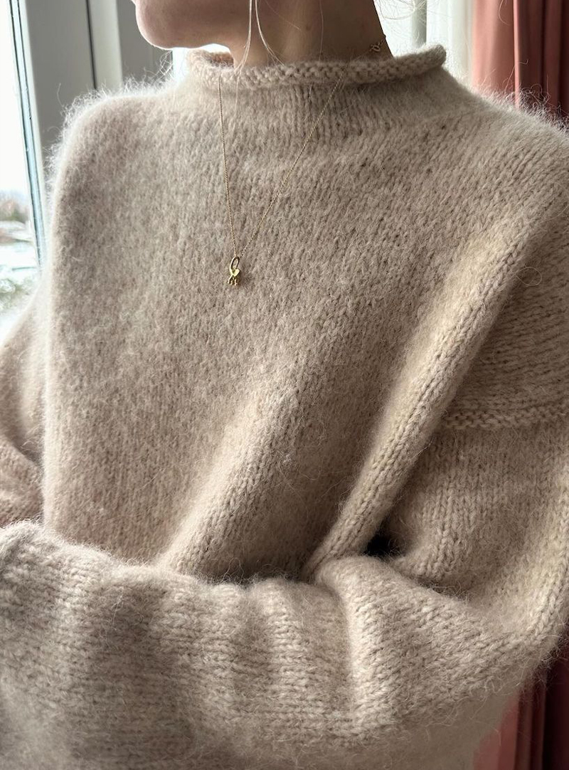 Ŭ¶ó¿ìµå ½º¿þÅʹ ž´Ù¿î ¹æ½ÄÀ¸·Î Á¦À۵˴ϴÙ. ¸ÕÀú, µÚÆÇ ¿äÅ©´Â ¾Õ, µÚ·Î µÚÁý¾î°¡¸ç ¶°ÁÖ¸ç µÇµ¹¾Æ¶ß±â ±â¹ýÀ¸·Î ¾î±ú °æ»ç¸¦ ¸¸µé¾îÁÝ´Ï´Ù. ÀÌÈÄ, °¢ ¾î±ú¸¦ ¾Õ, µÚ·Î µÚÁý¾î°¡¸ç µÇµ¹¾Æ¶ß±â·Î ¶°ÁÝ´Ï´Ù. ±×·± ´ÙÀ½ ¾çÂÊ ¾î±ú¸¦ ¿¬°áÇÏ¿© ¾ÕÆÇÀ» ¶°ÁÝ´Ï´Ù. ¾ÕÆÇ°ú µÚÆÇÀ» µû·Î ¶°ÁÖ°í ¾ÏȦ¿¡¼ ¿¬°áÇÑ µÚ ¿øÅë¶ß±â·Î ¸öÆÇÀ» ¶°ÁÝ´Ï´Ù. ¼Ò¸Å´Â ¾ÏȦ µÑ·¹¿¡¼ ÄÚ¸¦ ÁÖ¿ö ¿øÅë¶ß±â·Î ¶°ÁÝ´Ï´Ù. ¸¶Áö¸·À¸·Î ¸ñµÑ·¹¸¦ µû¶ó ÄÚ¸¦ ÁÝ°í ¸Þ¸®¾ß½º ¶ß±â·Î ÆÛ³Î³Ø¶óÀÎ(funnel neckline)À» ¸¸µé¾îÁÝ´Ï´Ù.