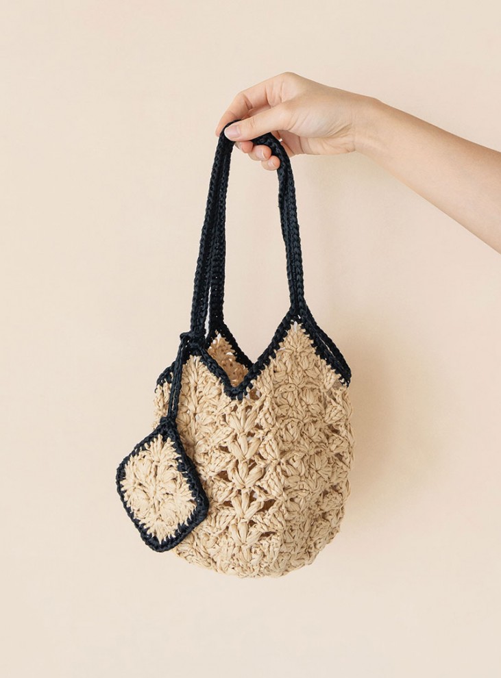 변형 구슬뜨기 무늬가 큐프로 라피아의 고급스러운 질감과 잘 어울리는 가방입니다. 반복 패턴의 네트무늬가 시원한 여름과도, 선선한 가을과도 잘 어울려 여러 계절 두루 사용하실 수 있답니다. 두 가지 사이즈로 선택의 폭을 넓혔으며, 두 가지 사이즈에 대한 자세한 설명을 모두 담은 전체 동영상 강의가 제공됩니다. 남은 실로 같은 사이즈의 모티브를 만들어 작은 파우치도 함께 달아보세요. 에어팟, 립밤 등 작은 소품을 담기에 딱 좋은 크기로 완성됩니다. 가방과 파우치는 배색을 넣으면 색다른 느낌으로 연출하실 수 있으며, 배색 안 할 경우 S (L) 사이즈 3 (5) 볼 모두 같은색으로 선택하시면 됩니다.
