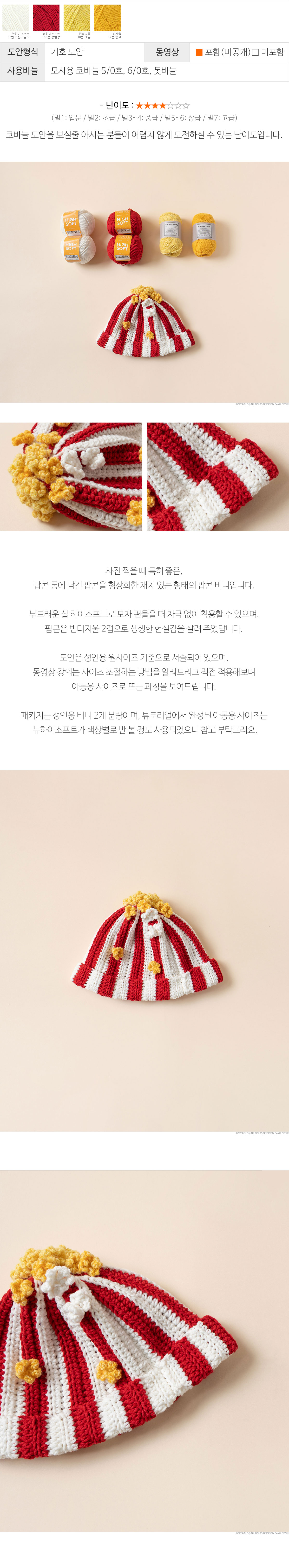 팝콘 비니는 @princecarmingco 원작자님과 협의 후 바늘이야기에서 도안 및 전체 동영상을 제작해 협업 패키지로 판매하게 되었습니다. 비공개 전체 동영상은 도안 또는 패키지를 구매하신 분들께만 제공됩니다.