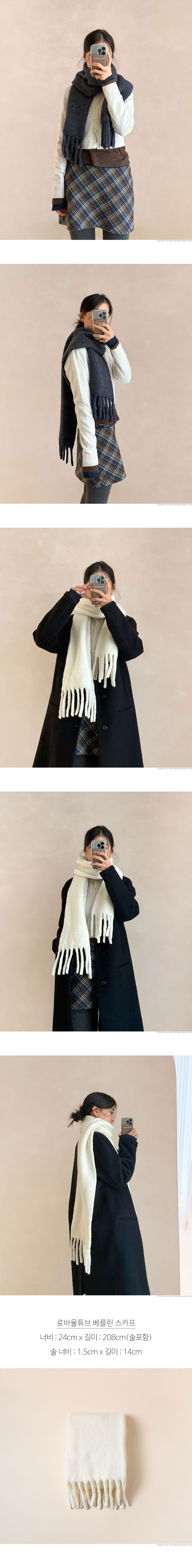 + 사이즈: 너비- 24cm x 길이 : 208cm(술포함) / 술 너비- 1.5cm x 길이 : 14cm (※완성치수는 뜨개방법과 솜씨에 따라 사이즈의 오차가 생길 수 있습니다.)