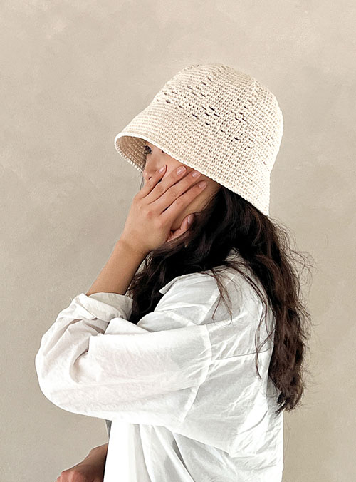 + 기본형 모자에 사슬로 무늬를 넣어 시원한 느낌을 주는 디자인의 버킷햇입니다.