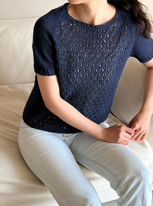+ 바늘비우기로 무늬를 낸 시원한 물방울 무늬 반팔 니트입니다.