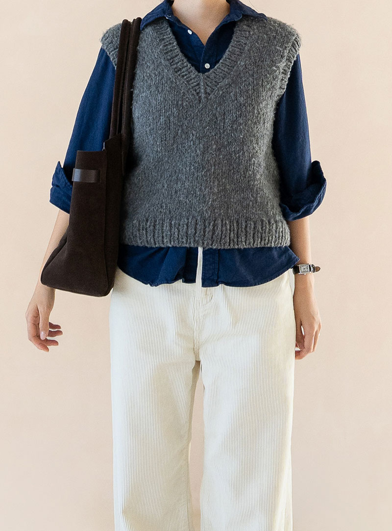 부드럽고 헤어리한 울알코로 뜨는 기본 형태의 브이넥 조끼입니다. 어려운 경사뜨기 대신 뒷판 코늘림으로 어깨 처짐을 만들어준 다음 코를 주워 앞판을 뜨고 몸통을 원통으로 뜨는 탑다운 스타일의 조끼입니다. 탑다운 방식의 디자인으로 옷의 길이를 자유롭게 조절할 수 있고, 꿰매는 작업이 없어서 편리합니다. 단계별로 자세한 전체 동영상 강의가 제공되기 때문에 의류를 처음 떠보는 분들에게도 추천드리는 작품입니다.