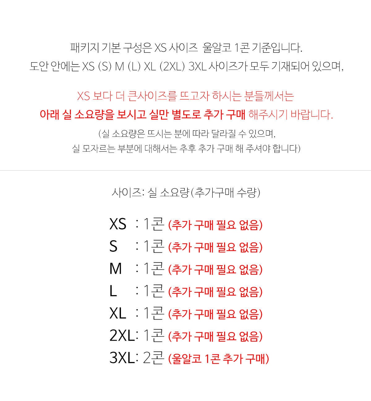 + ½Ç »ç¿ë·®: 1 (1) 1 (1) 1 (1) 2 ÄÜ / 270 (285) 300 (315) 330 (360) 390g (*2XL »çÀÌÁî´Â ¼Õ¶¡¿¡ µû¶ó ÇÑÄÜÀ¸·Î ¸ðÀÚ¸£½Ç ¼ö ÀÖ½À´Ï´Ù.)
