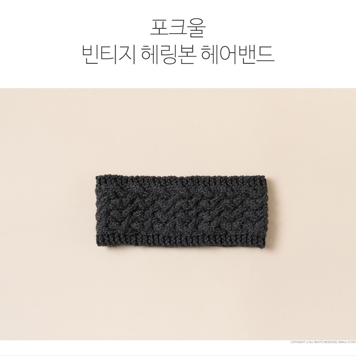 통통한 포크울 1볼로 뜨는 따뜻한 헤어밴드입니다. 간단한 교차뜨기(꽈배기 무늬) 규칙 반복으로 만들어지는 헤링본 무늬가 중앙에 들어가 있어 빈티지하고 캐주얼한 무드로 완성됩니다. 6mm 바늘에 굵은 실로 뜨기 때문에 금방 완성하실 수 있고, 머리 둘레에 맞게 자유롭게 사이즈 조절이 가능합니다. 피부에 직접 닿았을 때 약간 간지러울 수 있지만 헤어밴드 안쪽면에 스포츠/근육 테이프를 붙여주시면 간지럽지 않게 사용 가능합니다. 전체 동영상 강의가 제공되며 꽈배기 바늘 없이 교차뜨기 하는 방법을 알려드립니다. 무늬 뜨기가 처음이신 분들이 도전하기 좋은 소품으로 추천드려요.