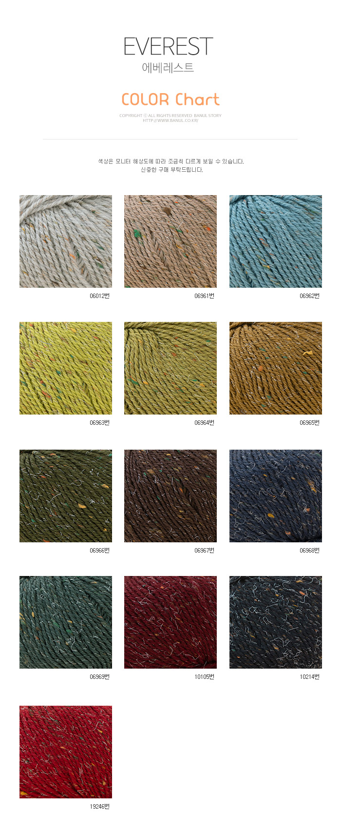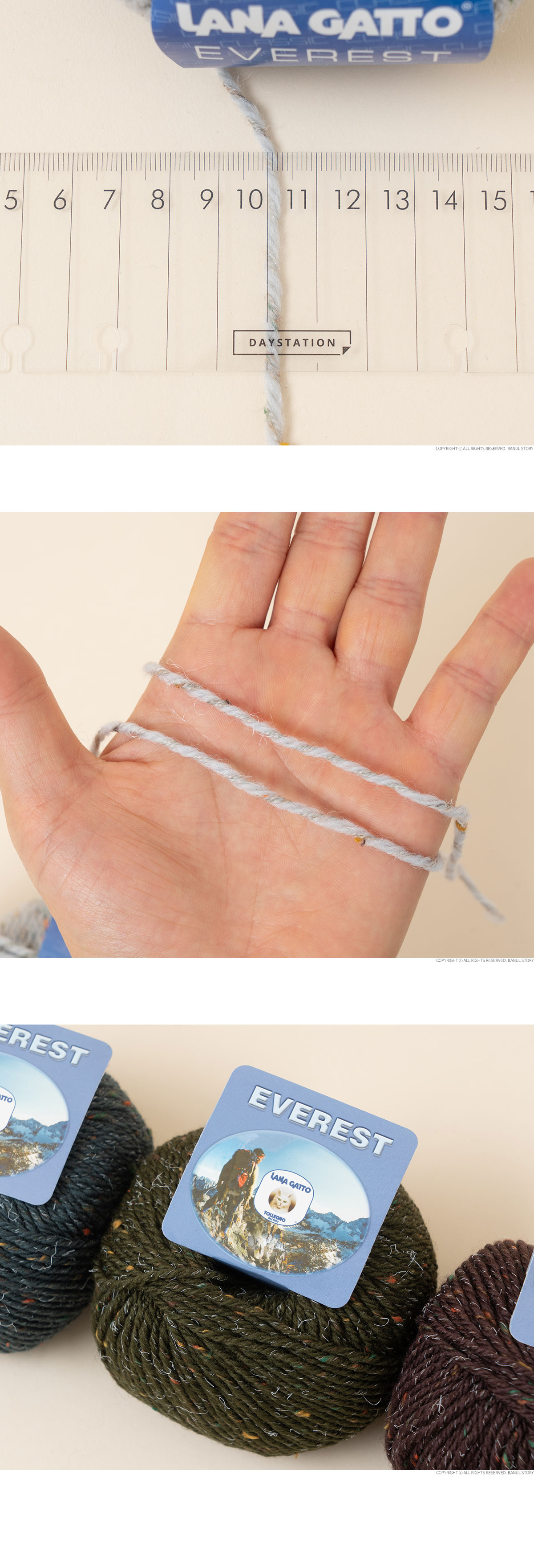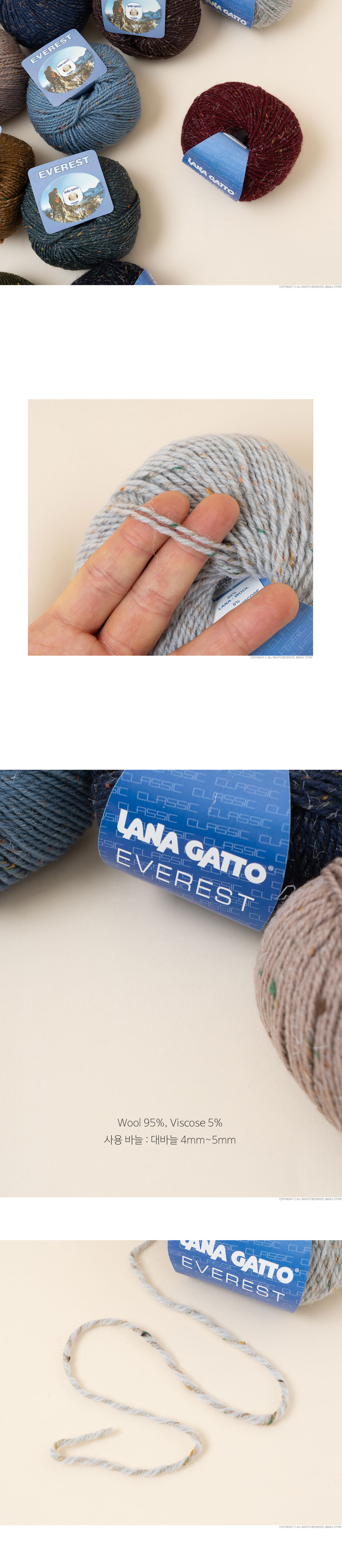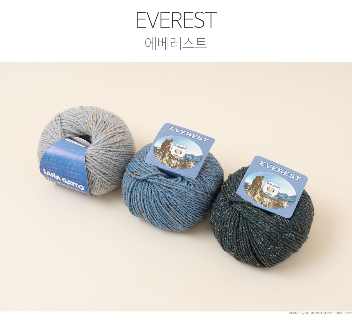 + 에베레스트(EVEREST)는 이탈리아 프리미엄 원사 브랜드 LANA GATTO에서 선보이는 겨울용 트위드 울 실로, 메리노 울 95%와 비스코스 5%를 혼방해 따뜻함과 고급스러운 조직감을 동시에 갖춘 것이 특징입니다.
