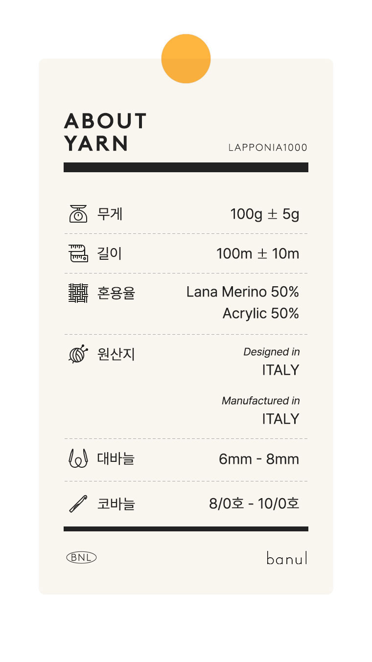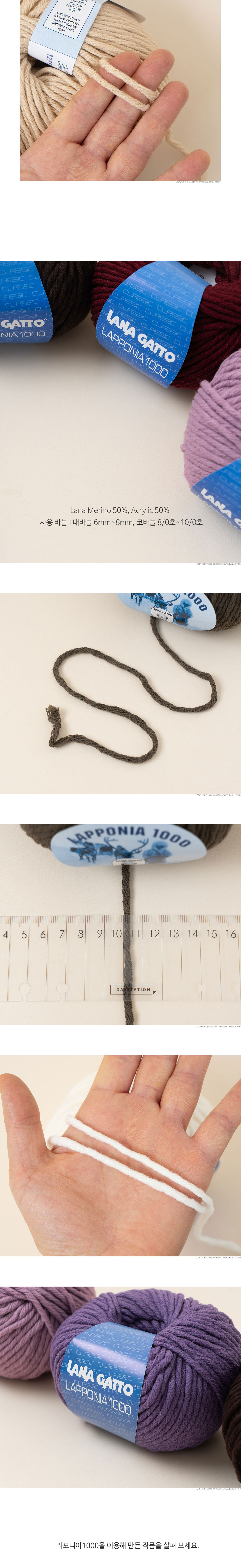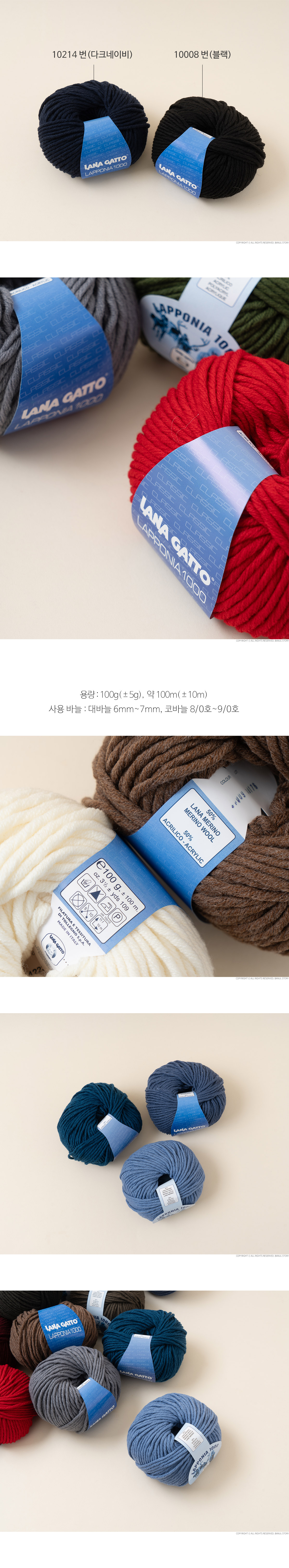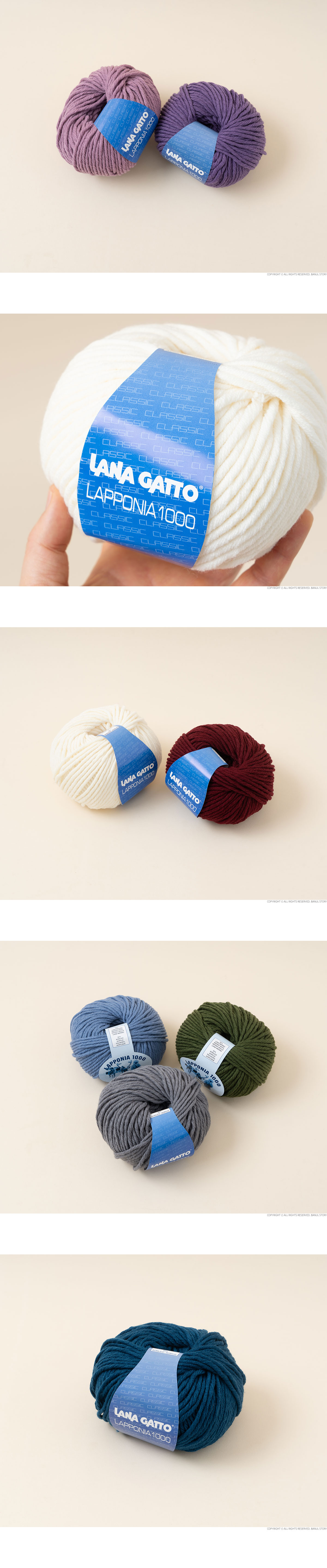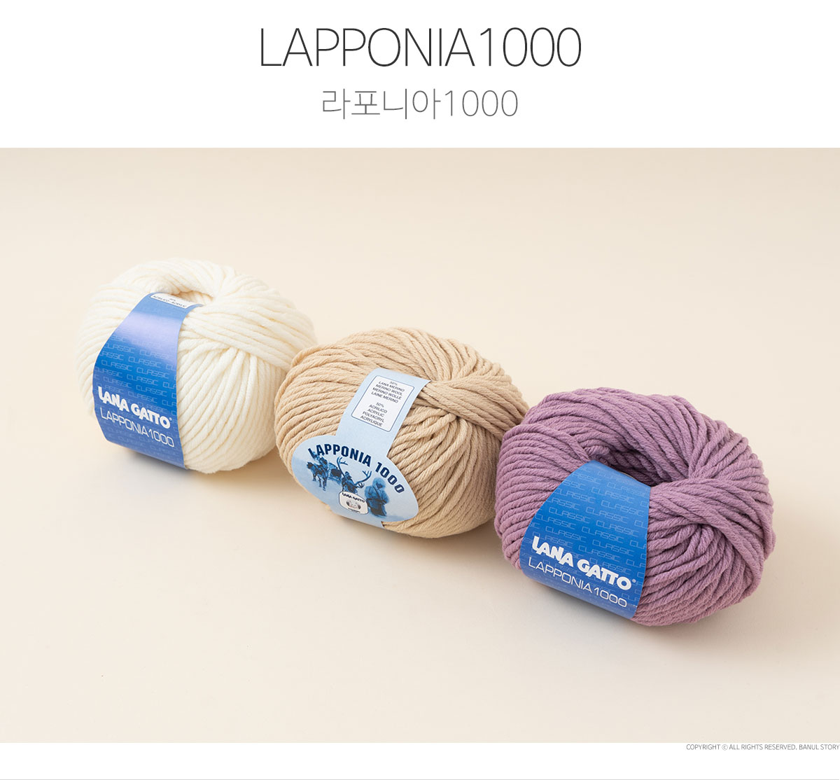 + 이탈리아 프리미엄 브랜드 LANA GATTO의 LAPPONIA1000은 풍성한 볼륨감과 뛰어난 보온성을 자랑하는 고급 울 혼방 뜨개실입니다.