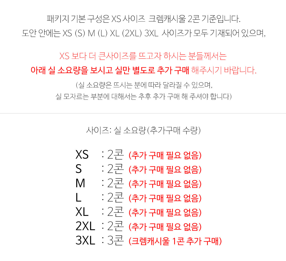 + 제품구성(XS기준): 크렘캐시울(색상선택) 2콘 + 도안