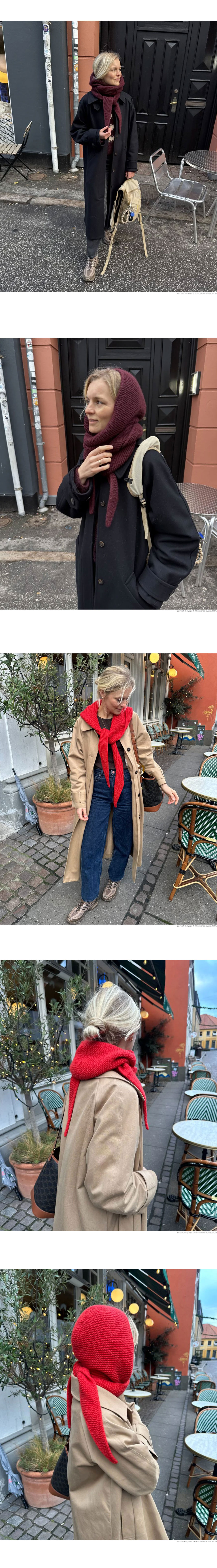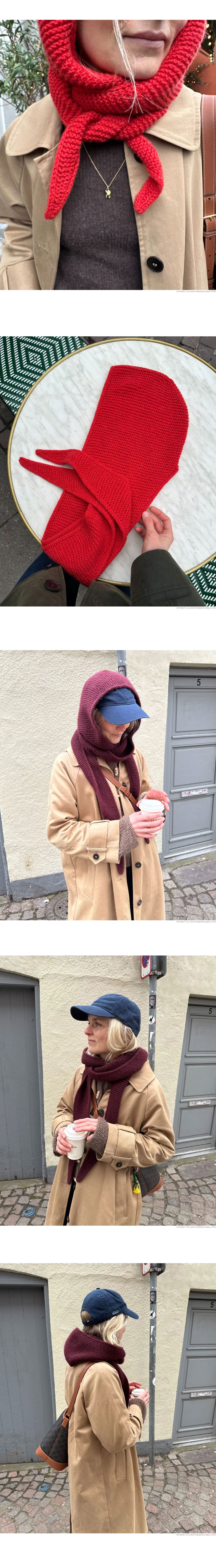 Aophie Hood는 끝에서 끝까지 한번에 이어서 뜨는 작품입니다. 가터무늬를 앞, 뒤로 뒤집어가며 뜨는 평면뜨기로 작업합니다. 가장자리는 아이코드로 뜹니다. 후드는 늘림과 줄임으로 모양을 잡아 준 뒤, 마지막에 목 뒤쪽을 매트리스 스티치(mattress stitch)로 꿰매어 마무리합니다.