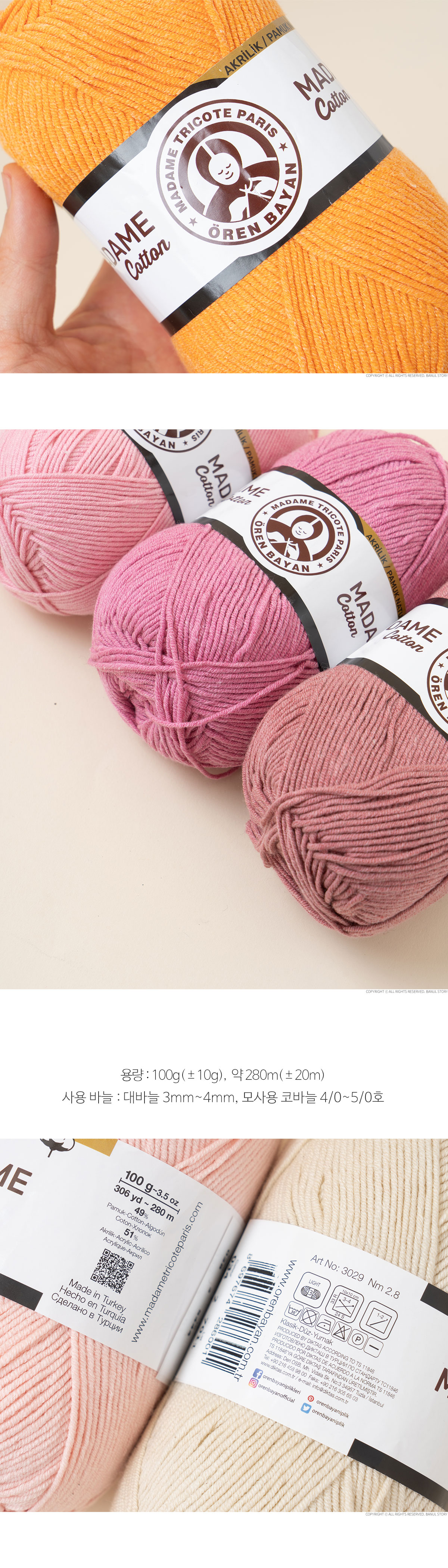 • 마담코튼(Madame Cotton)(1볼/100g±10g) x 5볼, 팩단위(1팩/5볼)