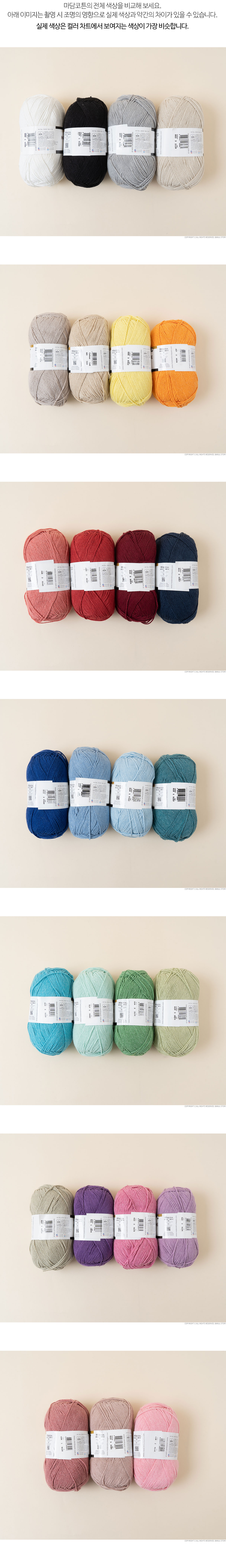 + 천연 코튼의 부드러움과  극세타입 아크릴의 실용성을 균형 있게 담아낸 데일리 뜨개 작업에 최적화된 혼방 실입니다.