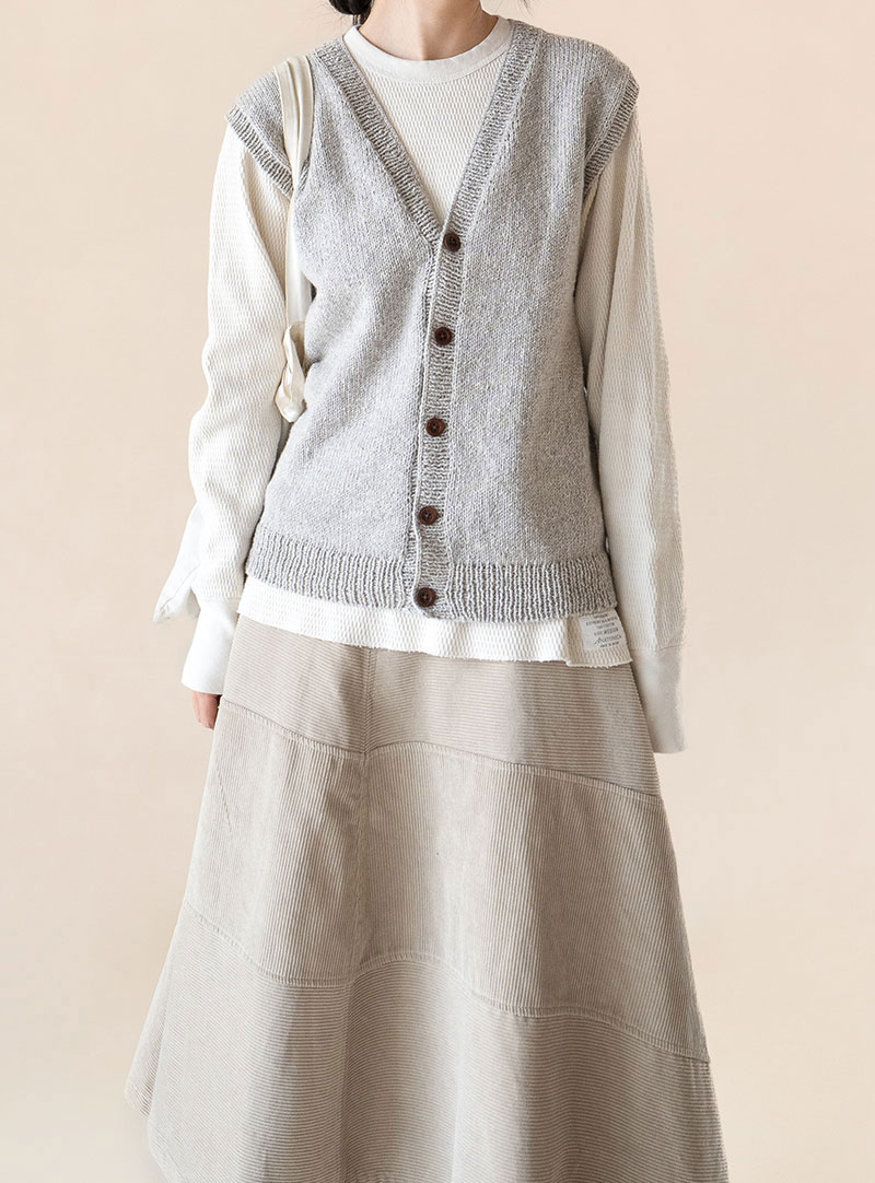 안티필링 50%, 코튼50%의 부드럽고 촉촉한 심플리데님으로 뜨는 오픈형 조끼입니다. 남녀공용으로 입기 좋은 베이직한 브이넥 조끼 디자인으로 탑다운 방식으로 진행되어 원하는 길이만큼 수정이 쉽습니다. 진동둘레와 가슴둘레가 넉넉한 편으로 여성뿐 아니라 남성분들도 편하게 입기 좋은 디자인입니다. 도안에는 단추구멍을 오른쪽 앞판에 만들 경우와 왼쪽 앞판에 만들 경우, 2가지 경우가 모두 서술되어 있어 원하는 방향으로 완성해 보실 수 있습니다. 동영상이 없는 작품으로 서술형 도안에 익숙하신 분에게 추천드립니다. 기본 탑다운 조끼를 제작해 보신 경험이 있으시다면 레벨업을 위한 작품으로 추천드립니다.
