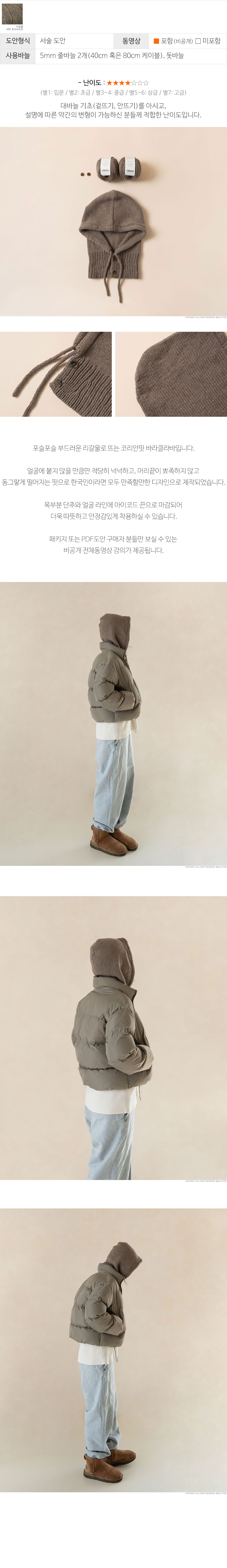 + »çÀÌÁî: FREE (»çÀÌÁî Á¶ÀýÀº ½Ç ±½±â·Î Á¶ÀýÇØÁÖ¼¼¿ä. ¾ãÀº ½Ç·Î ¶ß¸é ÀÛ¾ÆÁö°í, ±½Àº ½Ç·Î ¶ß¸é Ä¿Áý´Ï´Ù.) / ¿Ï¼º »çÀÌÁî : °¡·Î ´Ü¸é 27cm, ¼¼·Î ±æÀÌ 49 cm (¡Ø¿Ï¼ºÄ¡¼ö´Â ¶ß°³¹æ¹ý°ú ¼Ø¾¾¿¡ µû¶ó »çÀÌÁîÀÇ ¿ÀÂ÷°¡ »ý±æ ¼ö ÀÖ½À´Ï´Ù.)