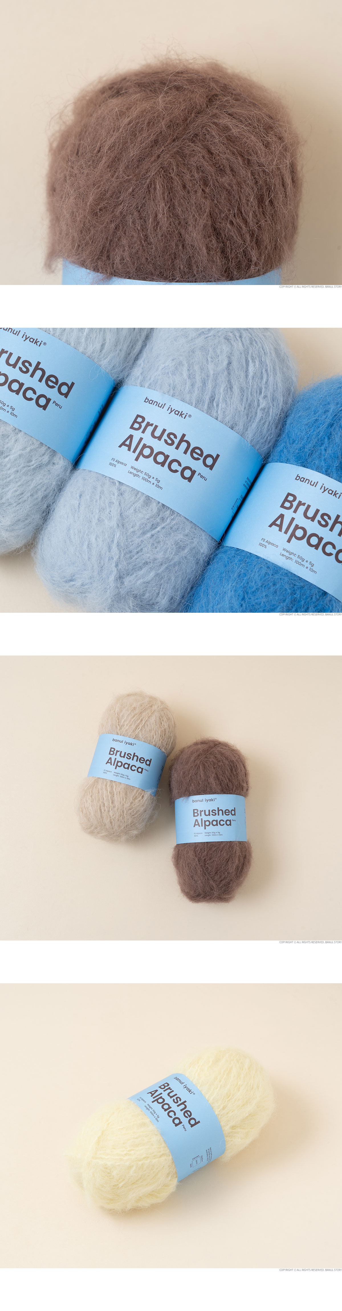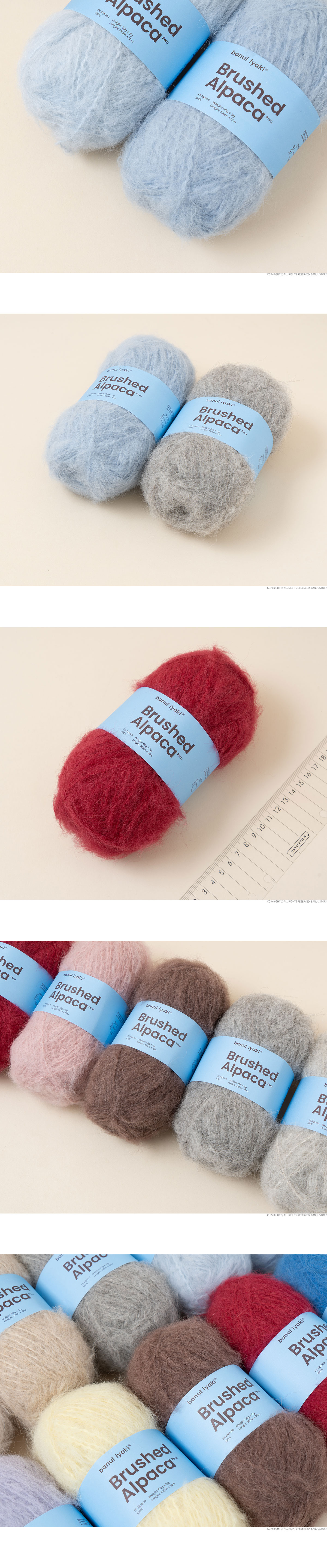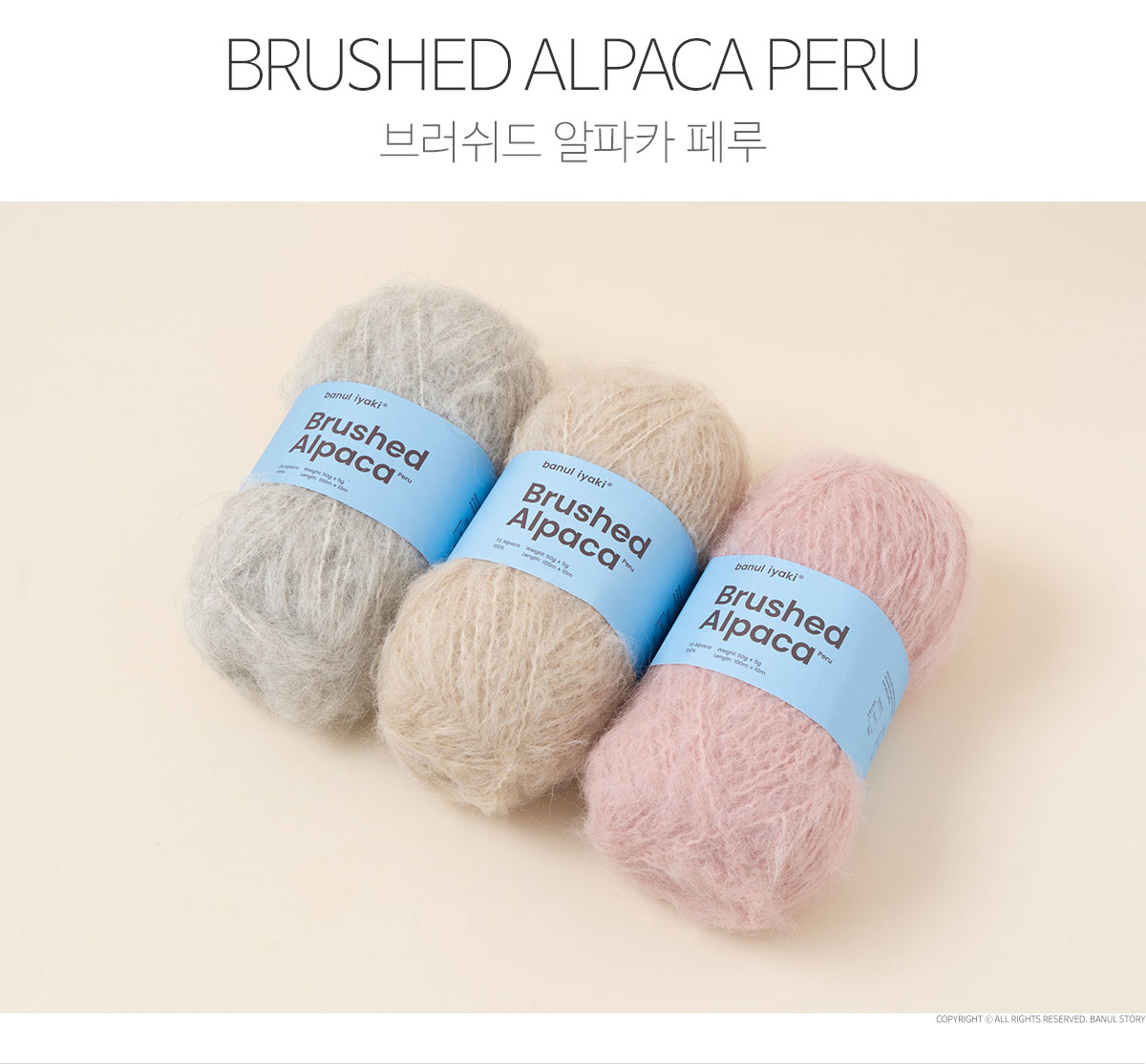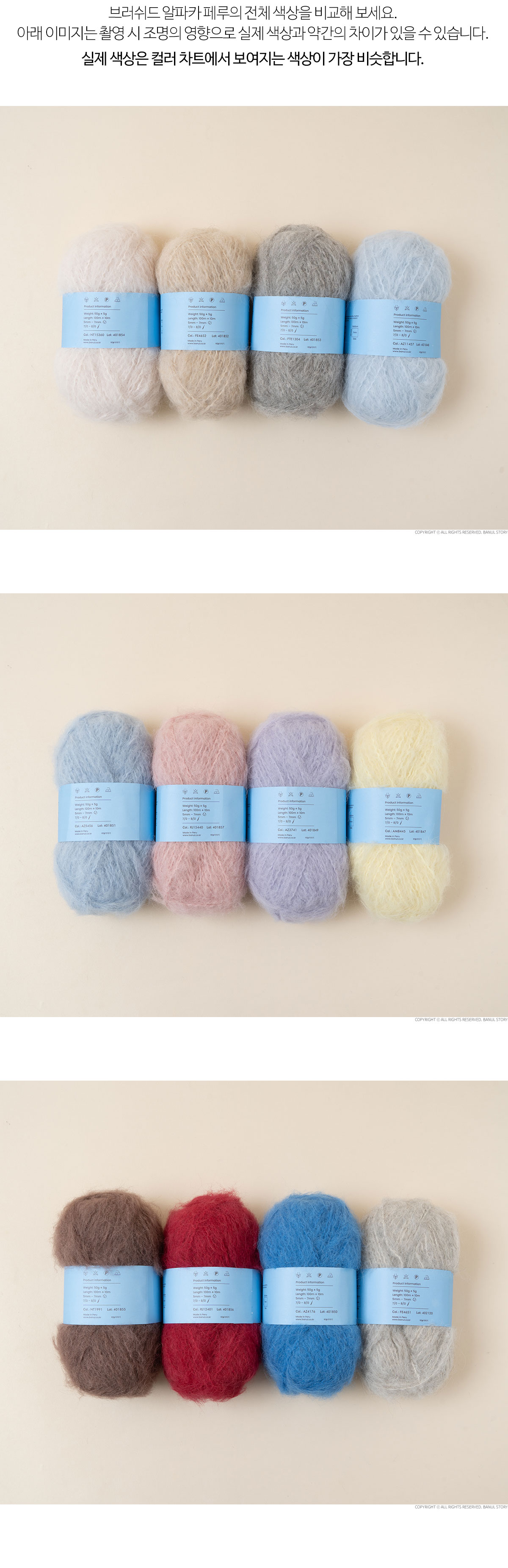 + 100% 알파카로 만들어진 심지에 브러싱된 알파카 섬유가 약하게 꼬아져있는 형태입니다.