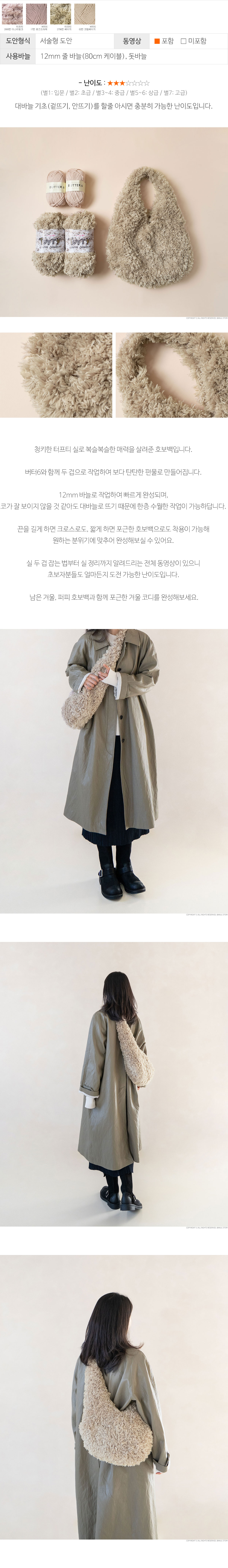 + 손땀에 따라 실 1볼이 모자라실 수 있습니다. 패키지는 최소수량을 기준으로 구성되었으며, 약간의 실 부족으로 고객님께 대량의 실 구매를 강요할 수 없기에 빠듯하게 구성되어있습니다. 실 모자르는것이 걱정되시는 분들께서는 코튼10 실을 추가구매하시는것을 추천드립니다. 실 개별구매 페이지 (클릭)